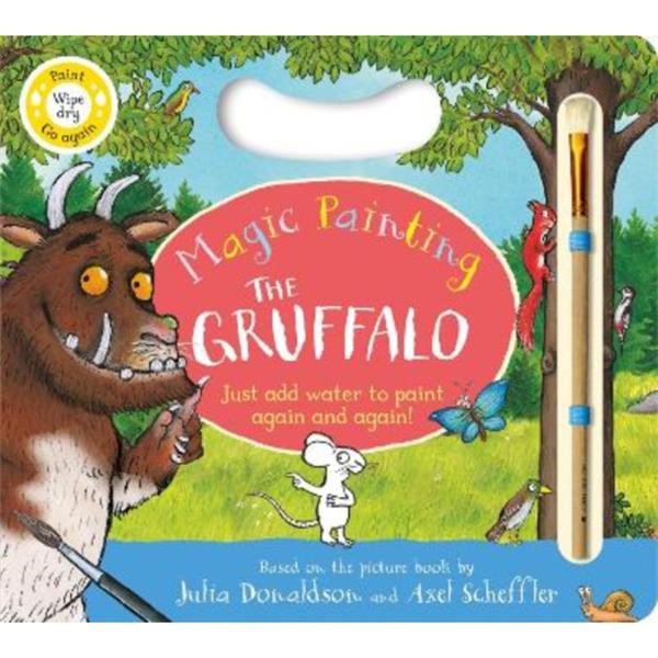 Walk further into the deep dark wood, and discover what happens when a quick-witted mouse comes face to face with a fox, an owl, a snake . . . and a hungry Gruffalo! Join in the fun with this brilliant reusable magic painting activity book, based on the bestselling modern classic, The Gruffalo, by Julia Donaldson and Axel Scheffler.
