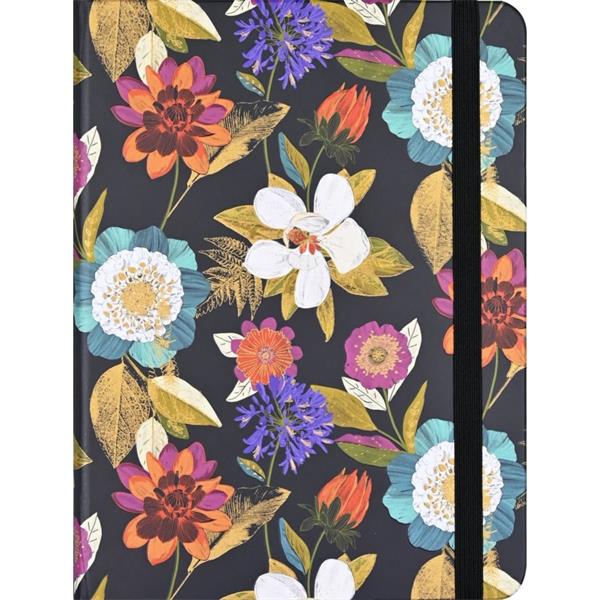 Vivid florals stand out against a sleek black background on the covers of this elegant journal.